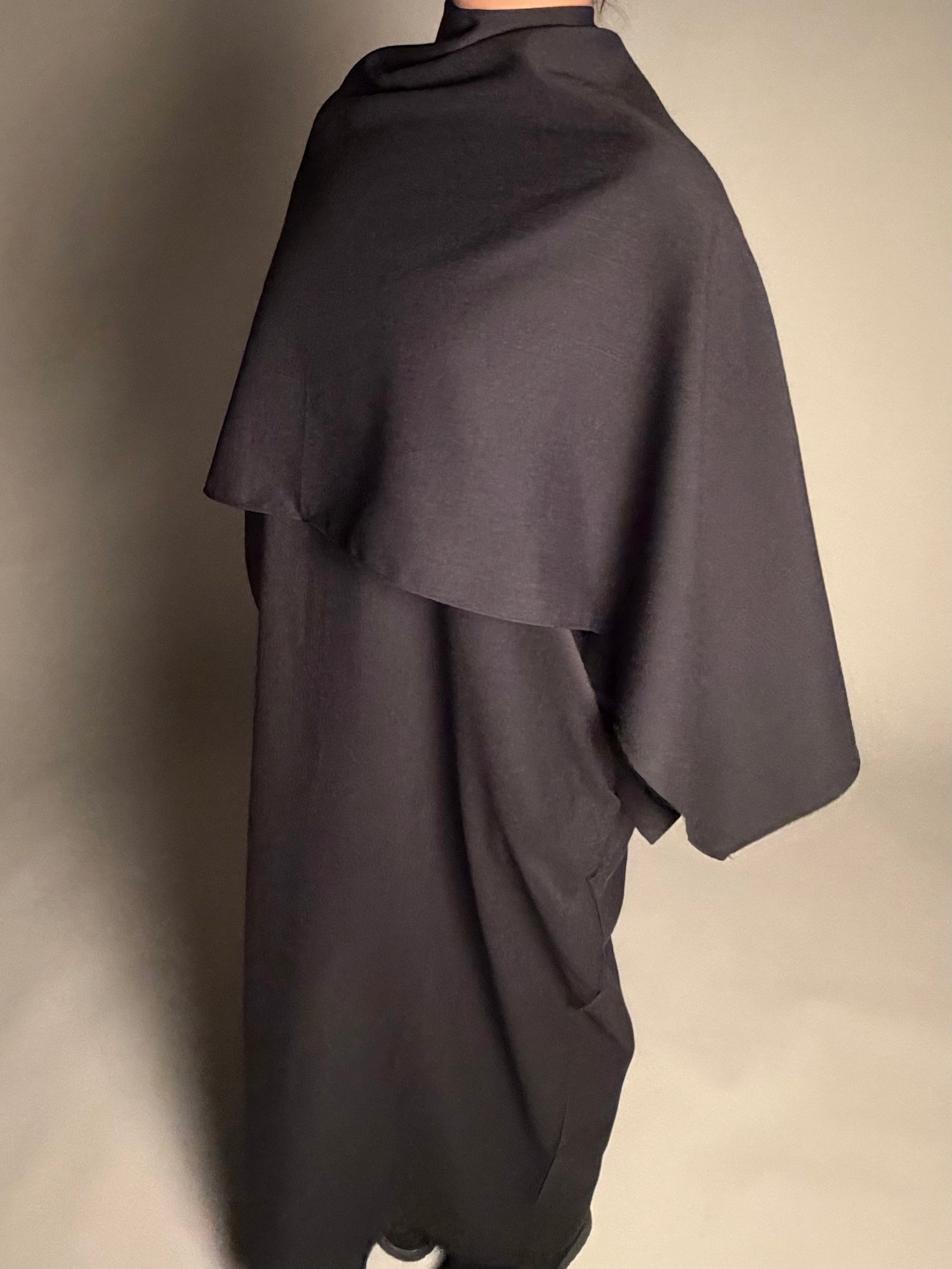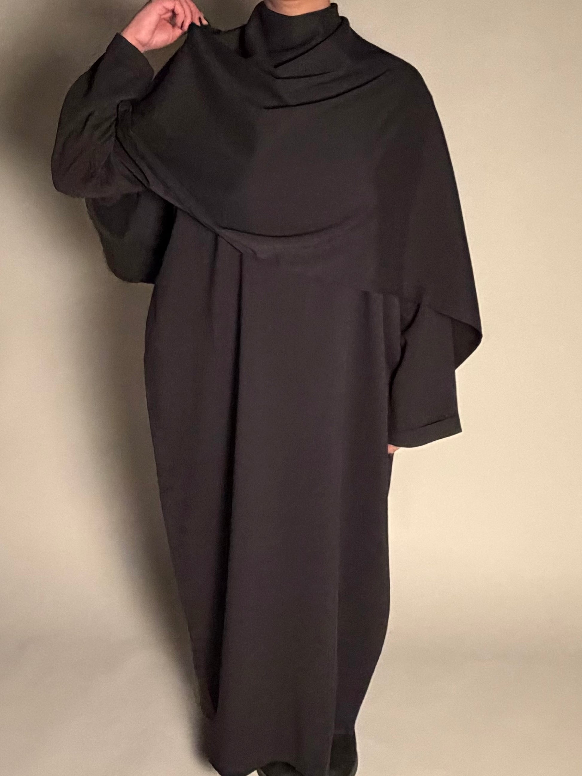 Comfortable and trendy, this abaya has side pockets and a loose cape-style shawl that closes with buttons. Wear it with or without it! The abaya is a plain model with a short zipper in the neck area to make the fit just right.